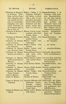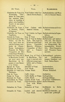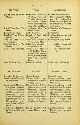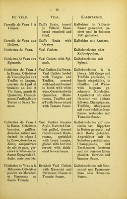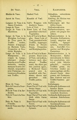 Credit: Dictionnaire universel pour la traduction des menus en français, allemand et anglais. 4. éd. corrigée : Allgemeines wörterbuch für übersetzung der speisekarten ... 4. verb. aufl. Universal dictionary of menus in English, French and German. Source: Wellcome Collection.
