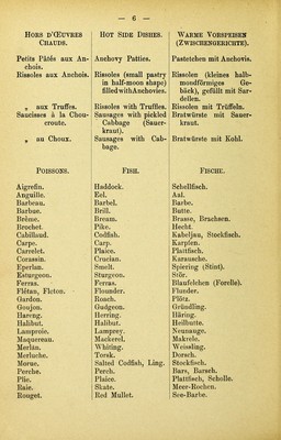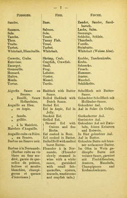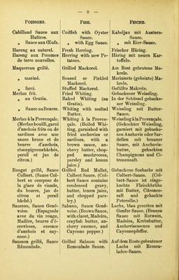 Credit: Dictionnaire universel pour la traduction des menus en français, allemand et anglais. 4. éd. corrigée : Allgemeines wörterbuch für übersetzung der speisekarten ... 4. verb. aufl. Universal dictionary of menus in English, French and German. Source: Wellcome Collection.