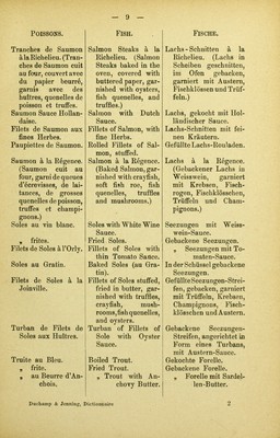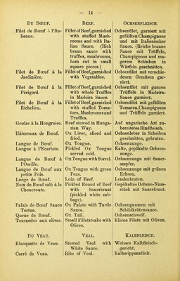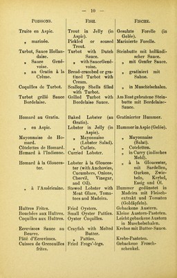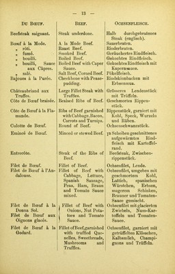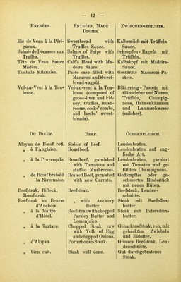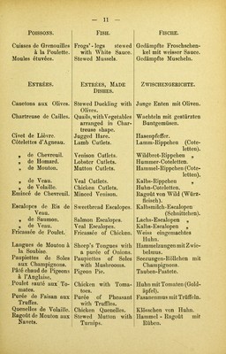 Credit: Dictionnaire universel pour la traduction des menus en français, allemand et anglais. 4. éd. corrigée : Allgemeines wörterbuch für übersetzung der speisekarten ... 4. verb. aufl. Universal dictionary of menus in English, French and German. Source: Wellcome Collection.