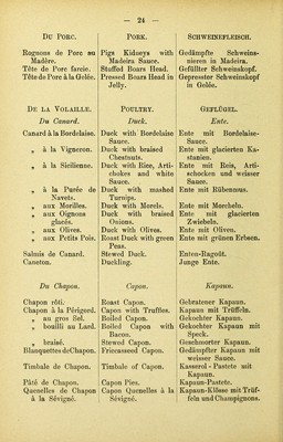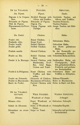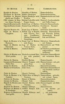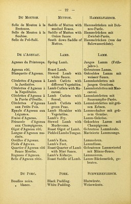 Credit: Dictionnaire universel pour la traduction des menus en français, allemand et anglais. 4. éd. corrigée : Allgemeines wörterbuch für übersetzung der speisekarten ... 4. verb. aufl. Universal dictionary of menus in English, French and German. Source: Wellcome Collection.