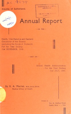 Credit: [Report 1949] / Medical Officer of Health, Sutherland County Council. Source: Wellcome Collection.