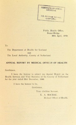 [Report 1949] / Medical Officer of Health, Sutherland County Council.