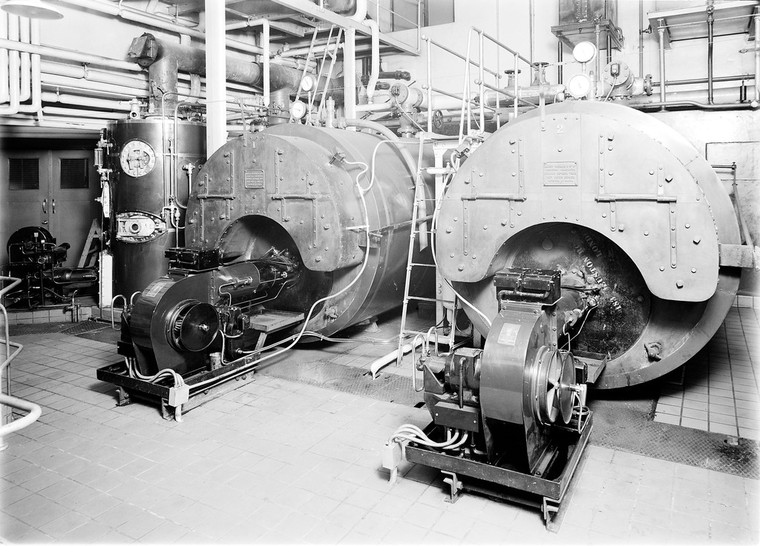 M0007679: Boiler Room Interior in the Wellcome Research Institute, 1941. In copyright. Source: Wellcome Collection.