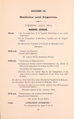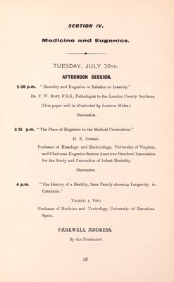 Credit: Programme / First International Eugenics Congress, London, 1912. Source: Wellcome Collection.