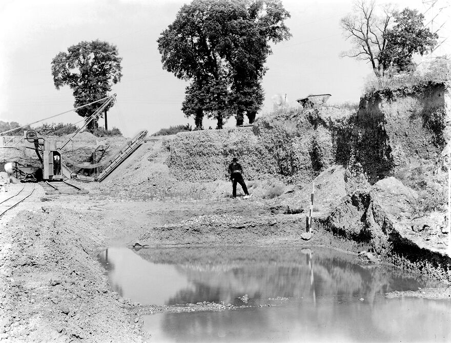 Credit: M0014908: Pleistocene deposits of the Thames valley: Mansion Lane gravel pit in early days of mechanical working. Source: Wellcome Collection.