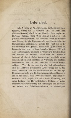 Beitrag zur Pathologie und Therapie der Vulva- und Scheiden-Carcinome ... / vorgelegt von N. Werthmann.