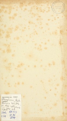 Human health, or the influence of atmosphere and locality; change of air and climate; seasons; food; clothing; bathing and mineral springs; exercise; sleep; corporeal and intellectual pursuits, &c. &c. on healthy man ; constituting elements of hygiene / by Robley Dunglison.
