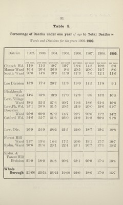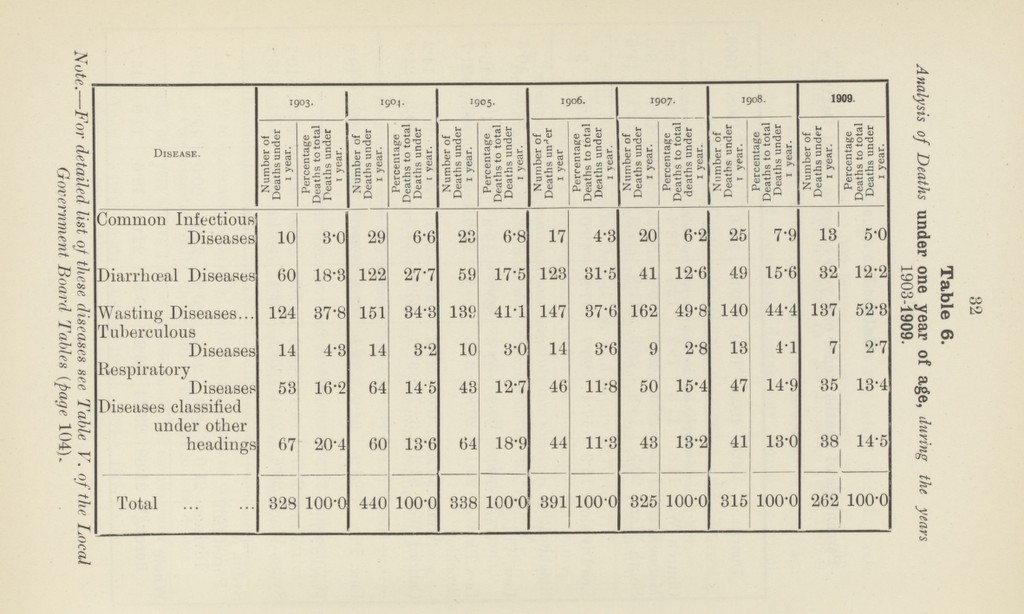 Credit: Annual report on the vital statistics and sanitary condition of the Borough of Lewisham and report of the Public Analyst for the year 1909. Source: Wellcome Collection.