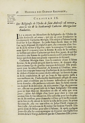 Histoire des ordres monastiques, religieux et militaires, et des congregations seculieres de l'un et de l'autre sexe, qui ont esté establies jusqu'à present; contenant ... Les vies de leurs fondateurs & de leurs reformateurs: avec des figures qui representent tous les differens habillemens de ces ordres & de ces congregations ... / [Anon].