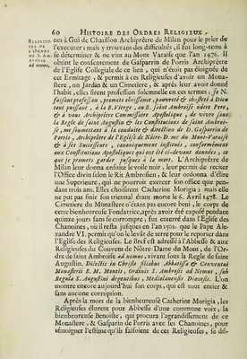Histoire des ordres monastiques, religieux et militaires, et des congregations seculieres de l'un et de l'autre sexe, qui ont esté establies jusqu'à present; contenant ... Les vies de leurs fondateurs & de leurs reformateurs: avec des figures qui representent tous les differens habillemens de ces ordres & de ces congregations ... / [Anon].