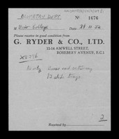Credit: Delivery Note from G Ryder & Co. Ltd. Source: Wellcome Collection.