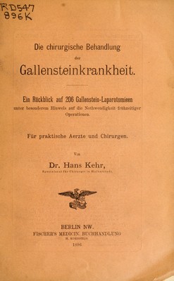 Credit: Die chirurgische Behandlung der Gallensteinkrankheit : ein Rückblick auf 206 Gallenstein-Laparotomieen unter besonderem Hinweis auf die Nothwendigkeit frühzeitiger Operationen. Für praktische Aerzte und Chirurgen. Source: Wellcome Collection.