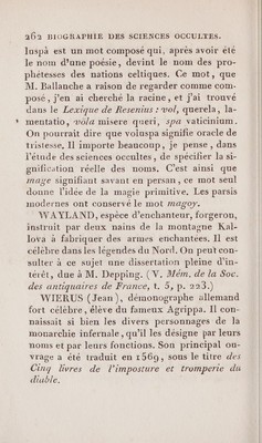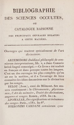 Tableau historique, analytique et critique des sciences occultes. Où l'on examine l'origine, le développement, l'influence et le caractère de la divination, de l'astrologie, des oracles, des augures, de la kabbale, la féerie, la magie, la sorcellerie, la démonologie, la philosophie hermétique, les phénomènes merveilleux, etc. : précédé d'une introduction et suivi d'une biographie, d'une bibliographie et d'un vocabulaire / par Ferdinand Denis.
