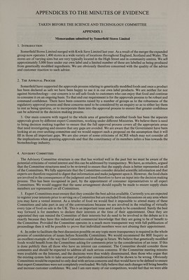 Scientific advisory system : genetically modified foods first report / Food and Technology Committee.
