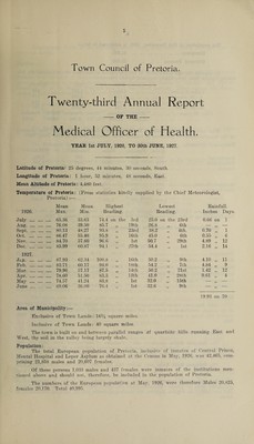 Credit: Annual report of the Medical Officer of Health / City Council of Pretoria. Source: Wellcome Collection.
