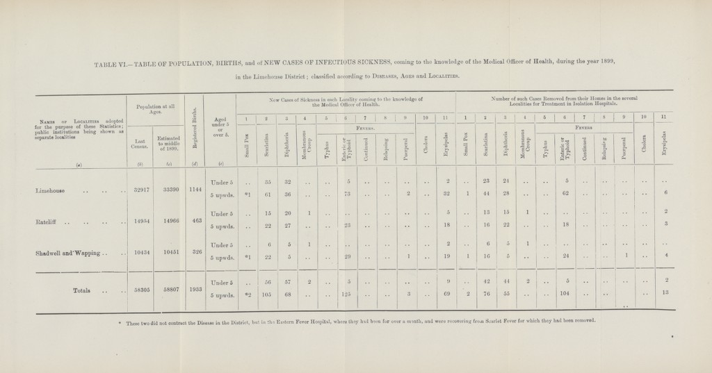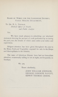 Report on the sanitary condition of the Limehouse District (comprising the Parishes of Limehouse, Shadwell, and Wapping, and the Hamlet of Ratcliff) for the year 1899.