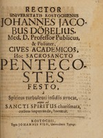 Cives academicos hoc sacrosancto Pentecostes festo, a spiritus turbulenti insidiis avocat / [Johann Jakob Doebel]. Public Domain Mark. Source: Wellcome Collection.