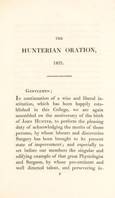The Hunterian Oration, delivered before the Royal College of Surgeons ... 1821 / [Thomas Chevalier].