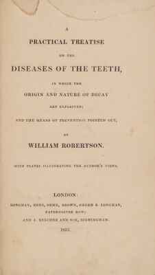 A practical treatise on the diseases of the teeth, in which the origin and nature of decay are explained; and the means of prevention pointed out / By William Robertson.