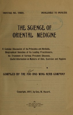 The science of oriental medicine : a concise discussion of its principles and methods, biographical sketches of its leading practitioners, its treatment of various prevalent diseases, useful information on matters of diet, exercise and hygiene / compiled by the Foo and Wing Herb Company.