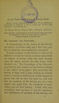 On the physiological action of nitrous oxide / by Dudley Wilmot Buxton.