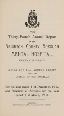 Annual report of the Brighton County Borough Mental Hospital : 1937 (& statement of accounts March 1938)
