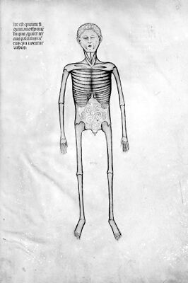 Credit: M0007577B: Manuscript illustration of an anatomical figure from <i>Anothomia Philippi Septimi</i>, 1345. Source: Wellcome Collection.