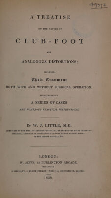 A treatise on the nature of club-foot and analogous distortions; including their treatment both with and without surgical operation / W.J. Little.