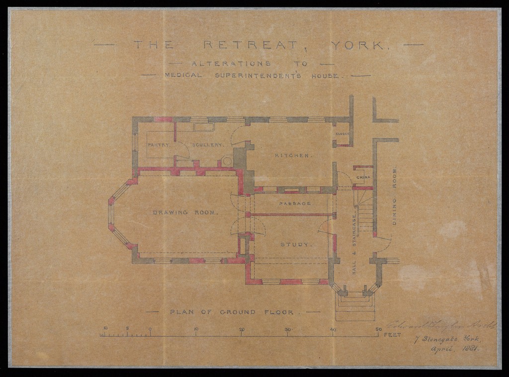 Credit: Proposed alterations to Medical Superintendent's House, plans by Edward Taylor of York. Source: Wellcome Collection.