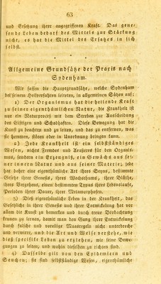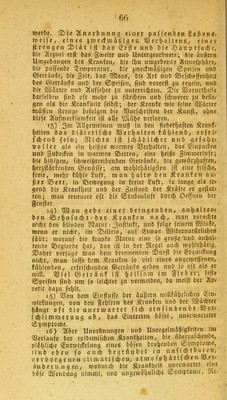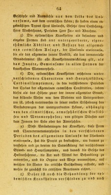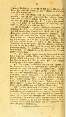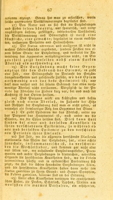 ![G8 ^dltc fagt ^Icc am beflcn ju, unb tier[)ötet bte ^-ntroicfe; lung böfer ©pmptome. 24) Äelne 2tue!(ecrung, auch (Irtcf unb miebccbolt an# gemanbt, fd)mdd)t unb ecfrf)6pft ln bcn I)if^igen Siebern, wenn man fie nur jur rechten 3elt anmenbet, nid)t ju fnUi unb ntd)t JU fpdt; nach ber €rlfU finb fU imerf! f)“ben fie hier ©d)njdd)c, Srfcböpfung, d)co nl|d)e 9^ad)fl•anf[)eit^n Iclcbt Jur §olge. 25) ©efnbruoüe, brobenbc-, jianntfcbc epmptome im Settraum ber ^öt)e ber ^ranfljeit, bie ^eftlgften Sleactlo# neu unb ungeflöm(len SBemegungen burfen f;ler nicpt fcbre/ ctcn, md}t baö ^eilüerfa(;ren ucrdnbern, ucrmirren, unb jum ©ebraud) fpmptomatlfd)er ?0Jlttel uerfübren, fie finb Seld)en von ber critifd)en 21nffrcngung ber 9)ntur, (eiten bte (rntfcbelbung ein unb finb 33orjeid)en berfelben. Sßo pd) aber Sufdlle biefer 2(rt früher in bem ^knfange' ber Äranfbeit unb in ber *})eriobe ii)reg 9Bad)6t()um6 einftnben, fca finb fie von bdfer SBebeutung, jelgen auf gefd[)rltdbe gu: fammenfe^ungen, auf Unorbnungen im Söeriauf unb auf eine Steigung ber ^ranfi;ett, auf baö ©eblrn unb SUercen/ fpftem liberjugeben. 26) 2)(e (i'arbioc^a meicbe man in fieberhaften .^ranf/ beiten »erorbnet, möfTcn fiihle»b, erfrlfchenb fein, nidjt cr< bi^enb, fdtarf unb reijenb. ®a6 i(l liberal! boß Opium, eß uerfleht fid), ju feiner geit. ®ic 3llepipbacmaca finb immer gefdhrlieh. 27) 2)le ^rnnfhelten entftehen alß ^•rjeugniiTe ber aügemelnen Statur, bie coßmifchen unb dimatifd)en iSie# tamorp!)ofen nid)t auß ©d)ulb beß ^nblöibuumß. 55al)er bat aud) für fie unb gegen ihren (^infiug bie 97atur befoin berß bie innere ©egenbemeguug unb bie beilcnbe ^raft, bie d)roni)d)en bagegen haben mehe ben @runb ihrer ®ntfie; bung im InbivibueHen Seben, in ber donfiitution, £ebcnß< meife, Temperament, 3!(ter 2C. beß (Jinjelncn, entftehen luelfl auß ©d)ulb beß ^ubiwlbuumß. ©aber vermag bie 07atur meniger ju Ihrer .^cllung, unb biefe forbert brin/ genber bte Ä'unflhöife auf unb frdftige iJKaaßregeln. 28) 3» ben chronifd)en ^ranfhetten Ifl bie 2!nn)en^ bung beß ']>iirganß, oft anhaltenb unb lange gcbrniid)t, jroecfmdiiiger unb mirffamcr alß baß IJlberia^, mie boß §ie# ber in ber Siegel ein mehr faltcß abfühlenbeß föerhalten forbert, |o bic chronifdfe ^ranfheit mehr ein erivdrnienbcß; jvie'bort mehr eine 2lu6leerung unb 3lußfd)eibung beß ©d>ab/ haften bie 3lufgabe Ifi, fo hier mehr bic Umdnberung, S>er/ befferung, 5öerjungung beß QMutß unb ber £ehenß|dftc unb fomit bet ganjen Üoiiftitution. I t» I i i](https://iiif.wellcomecollection.org/image/b2234567x_0074.jp2/full/800%2C/0/default.jpg)