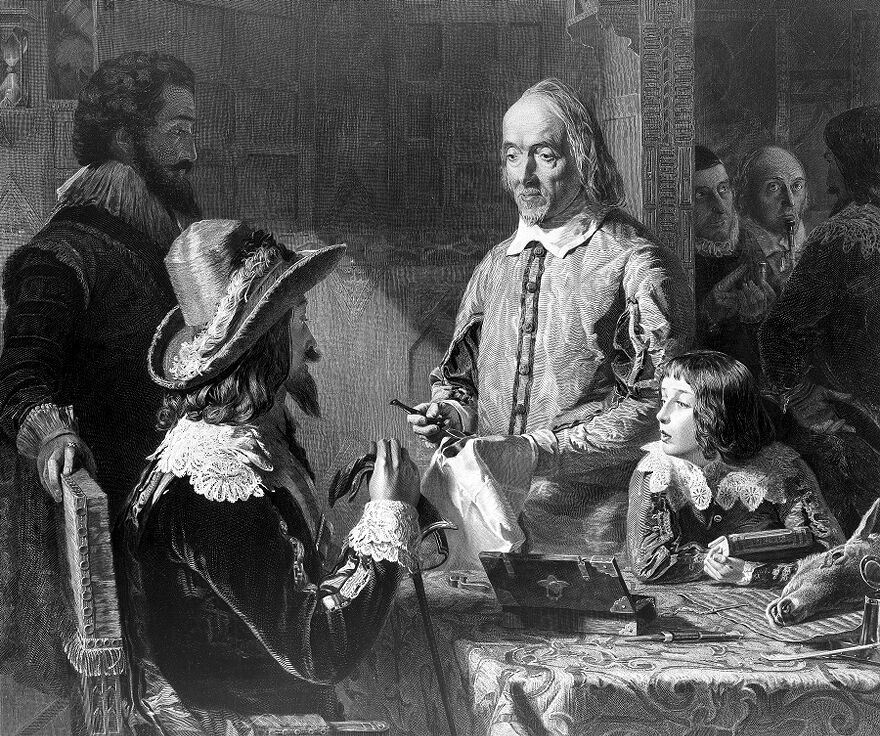 Credit: M0016121: William Harvey demonstrating the palpitations of the foetal heart of a deer to King Charles I. Source: Wellcome Collection.
