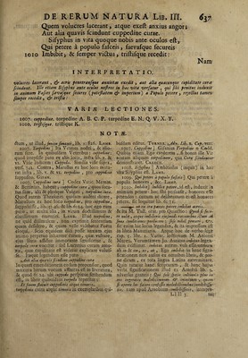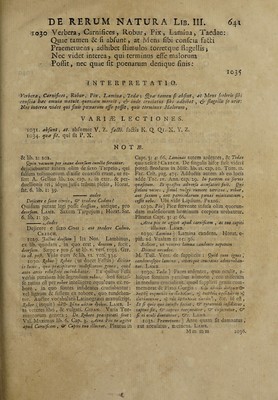 Credit: De rerum natura libri sex / Cum notis integris Dionysii Lambini, Oberti Gifanii, Tanaquilli Fabri, Thomae Creech, et selectis Jo. Baptistae pii, alliorumque, curante Sigeberto Havercampo, qui & suas & Abrahami Preigeri adnotationes adjecit. Acc. interpretatio Thomae Creech, variae lectiones et notulis Is. Vossii, etc. Source: Wellcome Collection.
