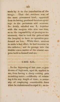 Credit: Practical observations on strictures of the urethra, with cases illustrative of the comparative merits of the caustic and common bougie ; also, remarks on fistula in ano, and an improved method of treating tinea capitis / [Thomas Luxmoore]. Source: Wellcome Collection.