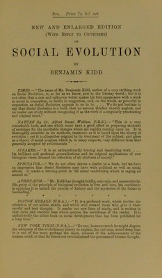 Social evolution / by Benjamin Kidd. Source: