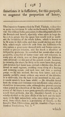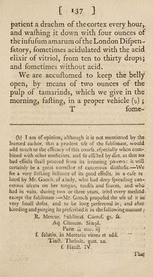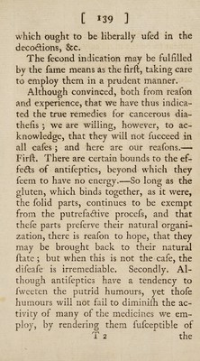 ![/ * C 140 ] the putrefactive proeefs: and this will appear to be the more eafy, when we con- fider that the proportion of active reme¬ dies, rauft neceflfarily be very fmall, when compared with that of the general mafs of humours. How great, then, would be the value of a medicine, which when mixed with the putrid fluids* fhould poflefs a power, of reftoring »them to fweetnefs, of equal energy with the difpo- fition with which the putrid fermenting principle is endued, of drawing the mild and healthy humours, into a ftate of pu¬ trefaction. THE END«](https://iiif.wellcomecollection.org/image/b30362817_0150.jp2/full/800%2C/0/default.jpg)