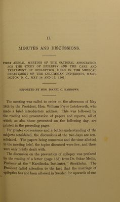 Transactions of the National Association for the Study of Epilepsy and the Care and Treatment of Epileptics at the first annual meeting held in Washington, D.C., May 14th and 15th, 1901 / edited by William Pryor Letchworth.