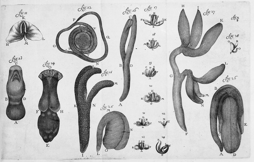 Credit: M0016635: Diagram showing the development of plant embryos or seedlings, 1688. Source: Wellcome Collection.
