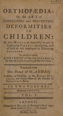 Orthopaedia; or, the art of correcting and preventing deformities in children. By such means, as may easily be put in practice by parents themselves, and all such as are employed in educating children. To which is added a defence of the Orthopaedia [against Pierre François Guyot Desfontaines] by way of supplement / by the author. Translated from the French.