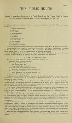 Annual report of the Department of Public Health and the Central Board of Health / South Australia.