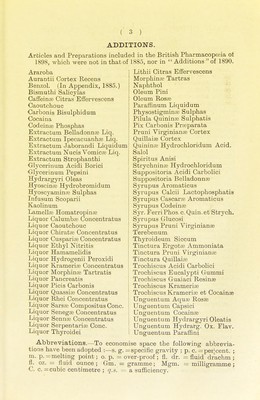 Credit: Synopsis of the British Pharmacopœia, 1898. Processes and formulae. A pocket guide, etc. Source: Wellcome Collection.