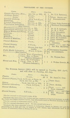 Credit: Faculty of Medicine : programme of courses, regulations for graduation, and bursaries and prizes open for competition, 1910-1911. Source: Wellcome Collection.