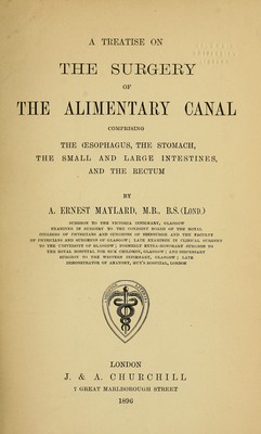 A treatise on the surgery of the alimentary canal : comprising the oesophagus, the stomach, the small and large intestines, and the rectum.
