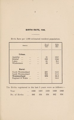 Credit: [Report 1940] / Medical Officer of Health, Westmorland County Council. Source: Wellcome Collection.