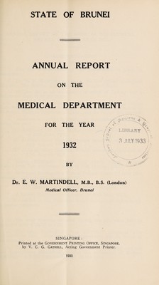 Credit: Annual report on the Medical Department, Brunei. Source: Wellcome Collection.