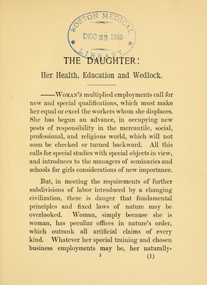 The daughter: her health, education and wedlock : Homely suggestions for mothers and daughters / By William M. Capp, M.D.
