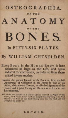 Osteographia, or the anatomy of the bones. In fifty-six plates ... executed in a camera obscura ... contribed by William Cheselden ... / [William Cheselden].
