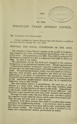 Credit: [Report 1925] / Medical Officer of Health, Dolgellau / Dolgelley U.D.C. Source: Wellcome Collection.