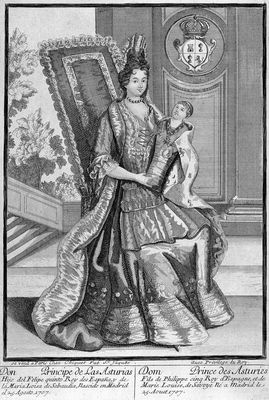 Credit: M0019624: New born son of Philip V of Spain being held by his mother Marie Louise of Savoy, engraving. Source: Wellcome Collection.