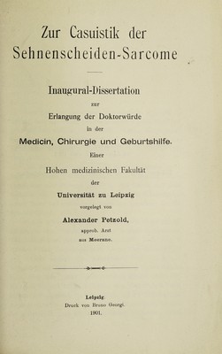 Zur Casuistik der Sehnenscheiden-Sarcome ... / vorgelegt von Alexander Petzold.