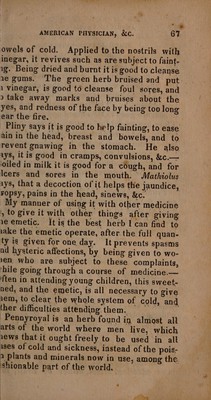 Credit: The American physician, and family assistant. In four parts: containing, I ... A general description of vegetable medicines. II ... The manner of preparing them for use. III ... Description of diseases and manner of curing them. IV ... A description of mineral and vegetable poisons, given by those called regular doctors, under the name of medicines / By Elias Smith. Source: Wellcome Collection.